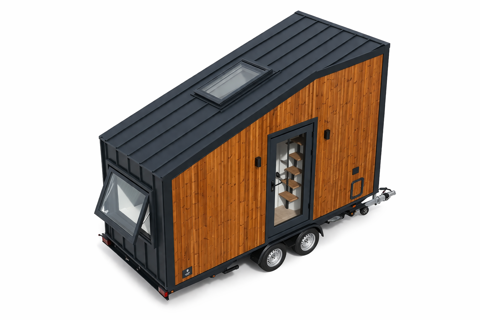 Mooble House Mo.5 450 ist ein ultra-kompaktes und mobiles Tiny House mit einer Länge von 4,5 m. Es bietet eine funktionale Raumaufteilung für 2 Personen im Alltag sowie zusätzliche Schlafmöglichkeiten für bis zu 4 Personen. Ideal für minimalistisches Wohnen, häufige Standortwechsel oder als flexible Lösung für Kurzaufenthalte.